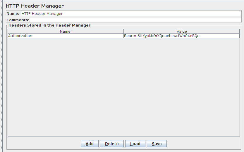 - Then we need to add the access token for request header.That can be done by adding the config element called 'HTTP Header Manager' to the thread group as below.